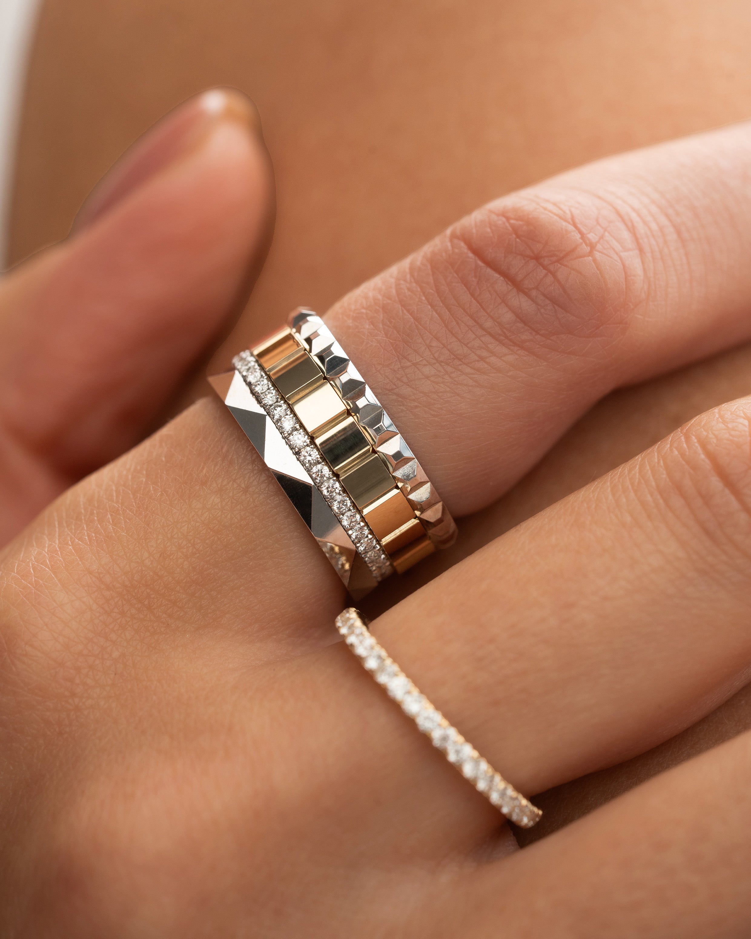 BELLURI žiedų kolekcija KARTU yra apie harmoniją, skirtą puošti mūsų rankas. Visi žiedai sukurti taip, jog išsirinkus du, tris ar net keturis skirtingus žiedus, jie nugultų ant mūsų rankų tarsi vienas. Jaukiai glaustųsi šalia, būtų komfortiški mūvėti ir idealiai derėtų tarpusavyje. Šie žiedai nepavaldūs laikui ir lyčiai, juos gali rinktis tiek vyrai, tiek moterys, dėvėti po vieną ir komplektuoti savo asmeninius, autentiškus derinius.